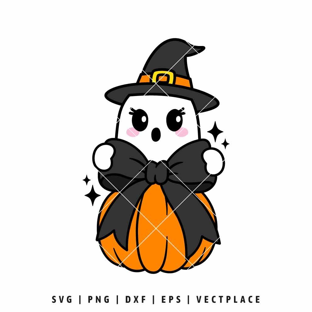 Cute Witch Ghost SVG Halloween Coquette Bow Pumpkin