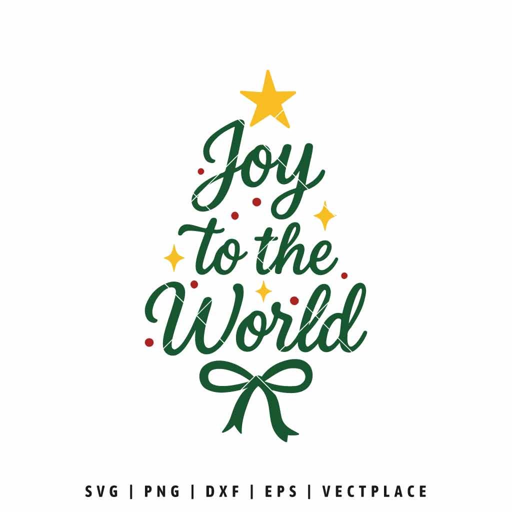 Joy to the World SVG Christmas Tree Typography with Bow