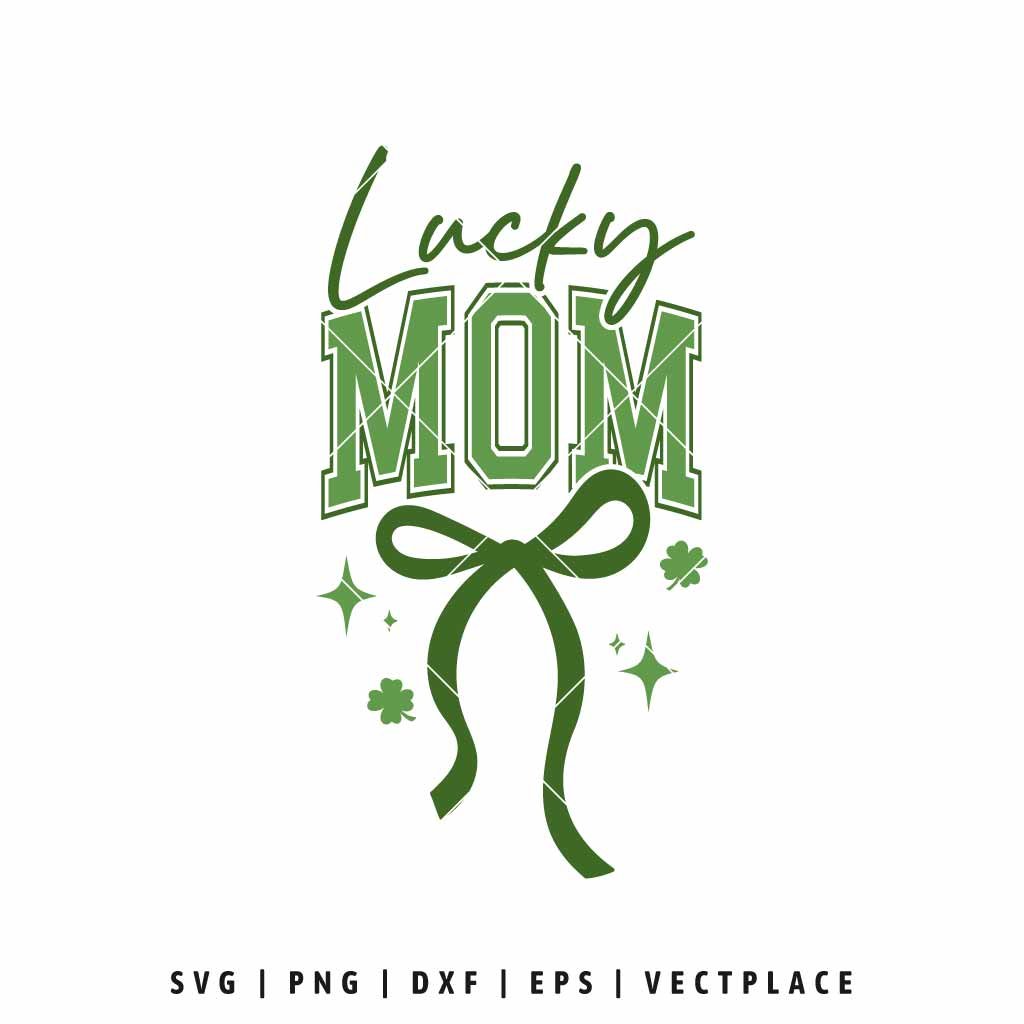 Lucky Mom SVG | St. Patrick’s Day Mom Shirt Design with Bow