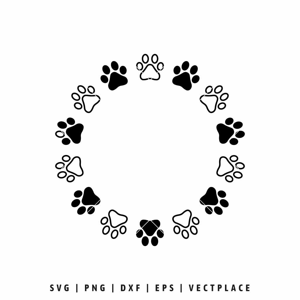 Paw Print Circle SVG | Pet Lover Monogram Frame Cut File