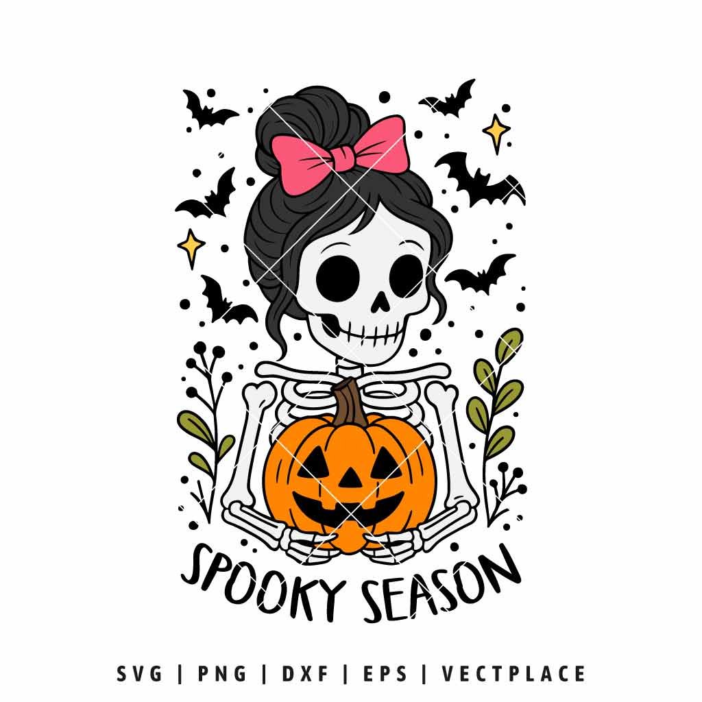 Spooky Season Skeleton Girl SVG with Pumpkin